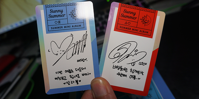 On the reverse side of the cards are their signatures and a short message. Look at how cute those signatures are. I found it hard to read their hangul handwriting so I didn’t bother translating. 😂