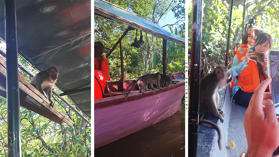 We followed the river inwards and stopped near the trees where a bunch of long-tailed macaques climbed into our boats. They were lured in by the noise and by the bananas that the guides were giving them. They hopped around the branches and nearby boats as they ate the fruits and seeds given to them.