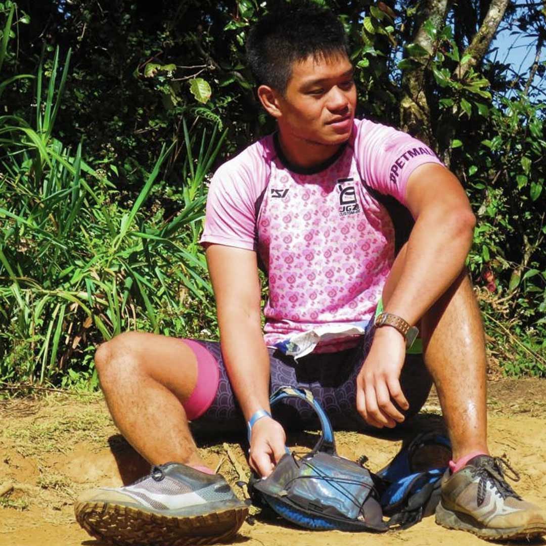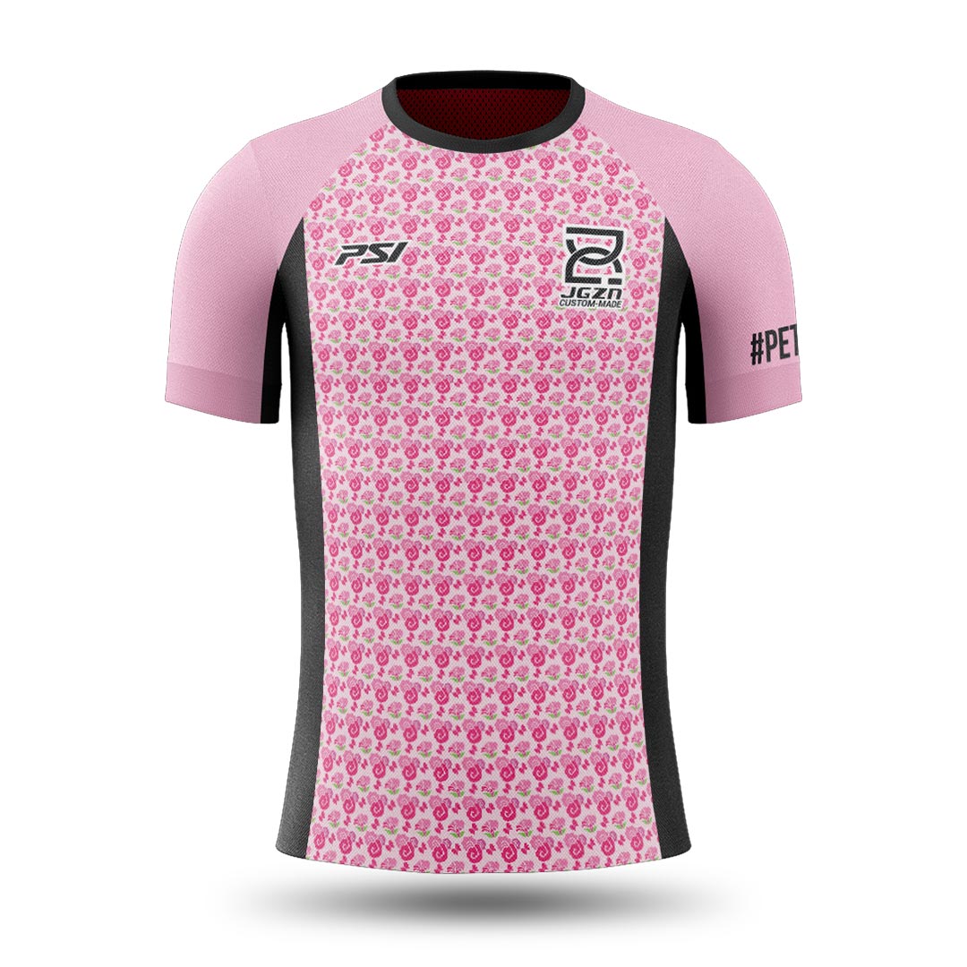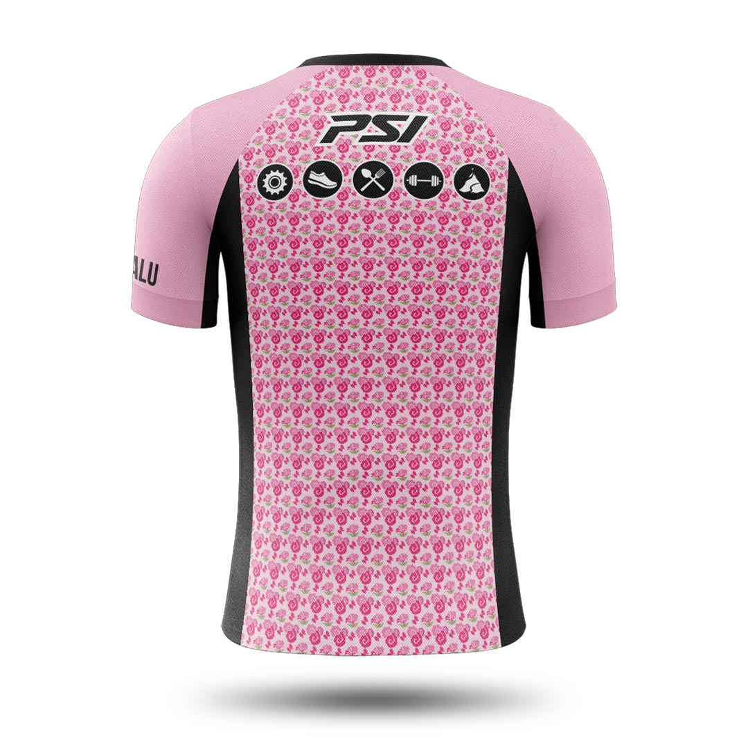 Custom-made floral pattern, #PETMALU sleeve, and the icons of my hobbies (Cycling, Running, Eating, Weightlifting, and Hiking) on the back.